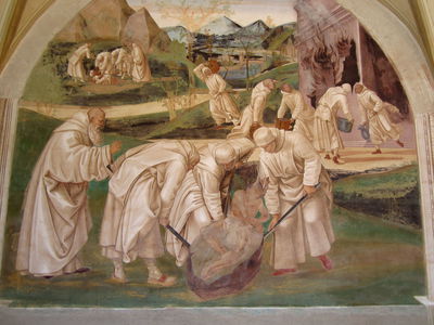 La vera attrazione dell'Abbazia sono gli affreschi nel grande chiostro. Le 35 scene coprono interamente le pareti dei quattro lati del chiostro e raffigurano gli episodi della vita di S. Benedetto.