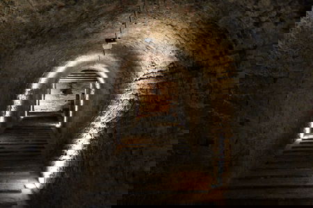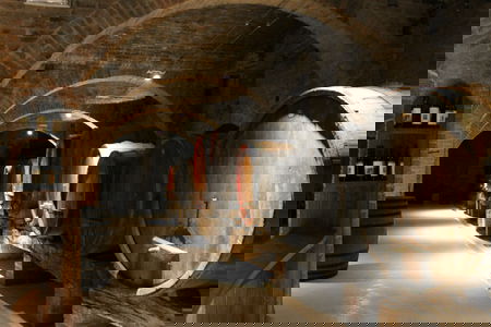 Nel cortile superiore di lato alla chiesa c'è un negozio di souvenir e prodotti tipici dell'azienda agricola dell'Abbazia. Che ne diresti di provare un liquore alle erbe dei monaci che curerà ogni disturbo? Prima di lasciare l'Abbazia non mancare una visita alla cantina sotto il chiostro. Puoi ammirare i giganti tini usati per conservare il vino prodotto dalle poche vigne dei dintorni e assaggiarlo con la guida esperta di Luca. Lui non è un monaco, ma dopo tanti anni vissuti al loro fianco ha molte storie da raccontare sull'Abbazia e sulla vita monastica. L'assaggio del vino è gratuito, ma dopo mezz'ora di chiacchiere di tutto tra cielo e terra, chi potrebbe andare via senza portare a casa una bottiglia o due di buon vino di questo posto speciale!