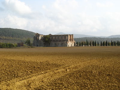 Il luogo include due punti di attrazione; la grande Abbazia con un'enorme chiesa senza tetto e l'eremo di Monte Siepi dove, secondo la leggenda, San Galgano si ritirò a vita eremitica nel 1170. Come simbolo di pace infisse la sua spada dentro la roccia, dove si trova ancora oggi.