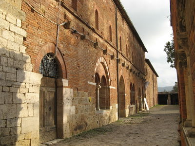 L'Abbazia è stata costruita tra 1218 e 1288 dai monaci cistercensi che normalamente costruivano i loro monasteri vicino al fiume (la Merse in questo caso) e lungo importanti strade di passaggio (la Maremma). La carestia nel 1329 e la peste nel 1348 hanno colpito duramente la comunità e alla fine del 15° secolo i monaci si trasferirono a Siena.