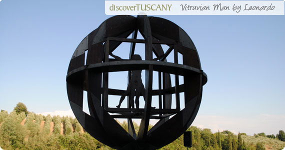 Dietro il Castello dei Conti Guidi, nel piccolo centro storico vinciano, riconoscerete la riproduzione in legno del famoso Uomo Vitruviano, un disegno in cui il maestro rappresentò le proporzioni ideali del corpo umano all'interno di un quadrato e un tondo. Da qui splendida anche la vista sul paesaggio circostante.