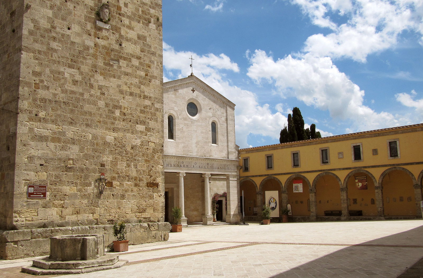 La cattedrale di Chiusi fu costruita dal vescovo fiorentino nella metà del VI secolo con l'utilizzo di materiale di recupero. Ciò nonostante, la facciata in travertino dell'architetto senese Giuseppe Partini risale alla fine del 19° secolo, così come gli affreschi all'interno della chiesa, realizzati in uno stile che imita il mosaico dal pittore senese Arturo Viligiardi. Ti consiglio vivamente di investire 50 centesimi per illuminare la chiesa: la decorazione interna è semplicemente stupefacente...anche se è un'imitazione!