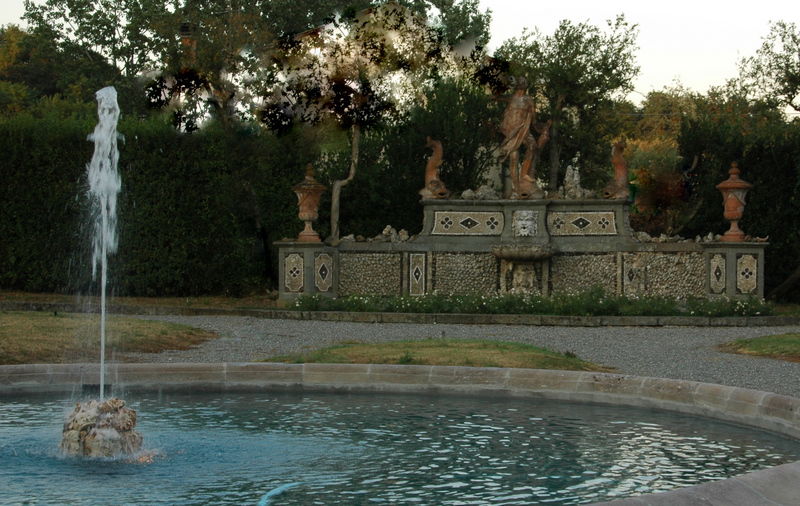 C'erano diversi "giochi d'acqua", con i quali il marchese era solito disorientare gli ospiti ignari, spinti nel giardino dalla terrazza superiore. Una volta qui, avrebbero cercato rifugio nel Tempio di Flora, ma solo per trovarsi sommersi dall'acqua che sgorgava dal soffitto a volta.