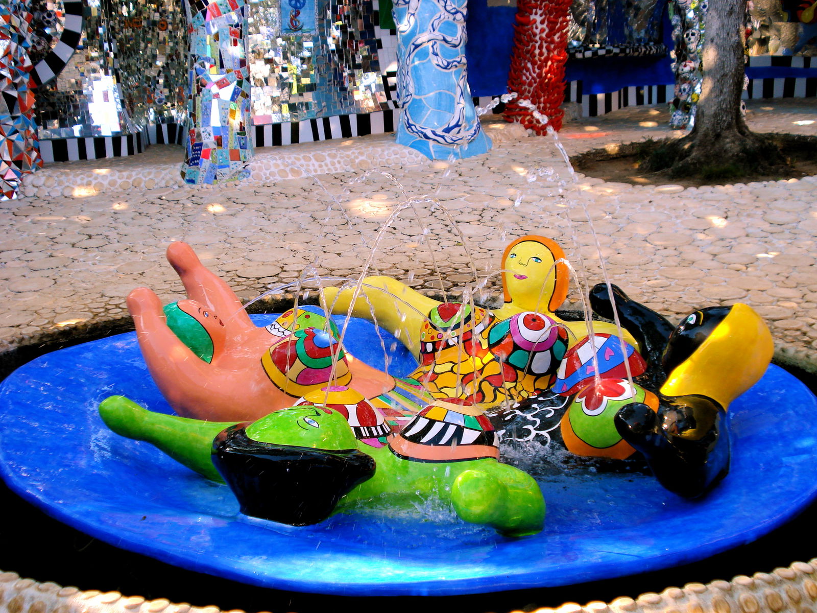 Raffigurata come una grande donna "sfinge", questa scultura era la casa di Niki quando lavorava al Giardino. E poi la Giustizia, con all'interno la scultura dell'ingiustizia di Jean Tinguely chiusa da un enorme lucchetto, l'Albero della vita, i cui rami sono teste di serpente e il fusto è ricoperto da iscrizioni e disegni dell'artista.