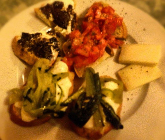 L’azienda agrituristica Le Vigne si trova a Tobbiana, immersa nel cuore della Toscana. Qui vengono allevati suini di pura razza Cinta Senese e bovini di razza Chianina seguendo il criterio filiera corta. Un agriturismo che crede nella tradizione, che partecipa al progetto CAMPAGNA AMICA di Coldiretti e che vende direttamente al consumatore finale: salumi, carne fresche, miele e olio extra vergine di oliva. Mangiare presso questo agriturismo vuol dire assaporare delicatamente il vero gusto del territorio. Le specialità sono, ovviamente, a base di carne di Cinta Senese e Chianina [salumi e bruschette con crema di lardo alle erbe aromatiche] prodotte in azienda, il menù è ricco di piatti tipici preparati usando solo prodotti a km 0 e, nonostante questa predominanza di carne, loro pensano anche ai vegetariani [proprio come me].