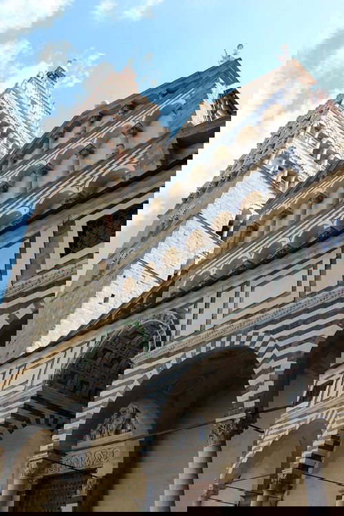 La reliquia fu posta in un altare argenteo e collocata in una cappella costruita appositamente, la Cappella di San Jacopo. Oggi il bellissimo altare, sicuramente l’opera più suggestiva visibile nel Duomo, è stato posizionato nella Cappella del Crocifisso, che si affaccia sulla navata destra della Chiesa. Sulla destra del Duomo noterete un edificio in mattoni davvero particolare, caratterizzato da un loggiato con archi a sesto acuto e bifore, è il Palazzo dei Vescovi. Qui, al piano terra, ha sede l’Ufficio per il Turismo di Pistoia (APT).