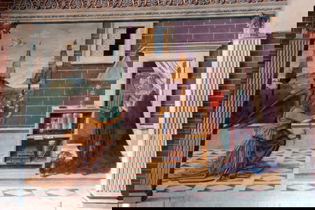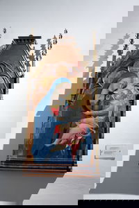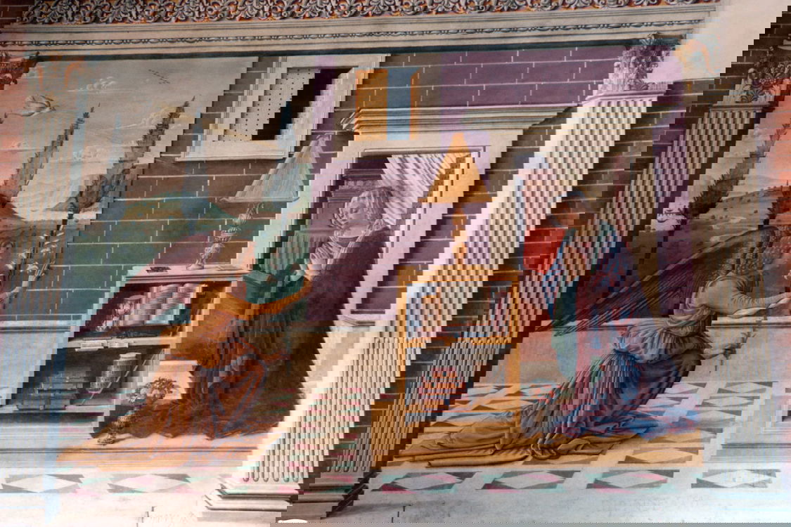 Nonostante i colori ricordino lo stile del Ghirlandaio, la bellissima Annunciazione sempre all'interno del Duomo è stata attribuita a Sebastiano Mainardi per le pennellate molto meno sicure, ma lo stile è probabilmente quello dello stesso Ghirlandaio. All'entrata della loggia, dovreste aver notato anche il fonte battesimale: fino a qualche decennio fa, i portici erano chiusi e l'area veniva usata come battistero comunale.
