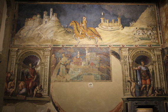 Sedendosi sulle panchine intorno alla stanza il visitatore può osservare con calma tutti i dettagli curiosi della vita cittadina del tempo. Il paesaggio della campagna dipinto non è molto differente da quello attuale con le vigne e gli oliveti.