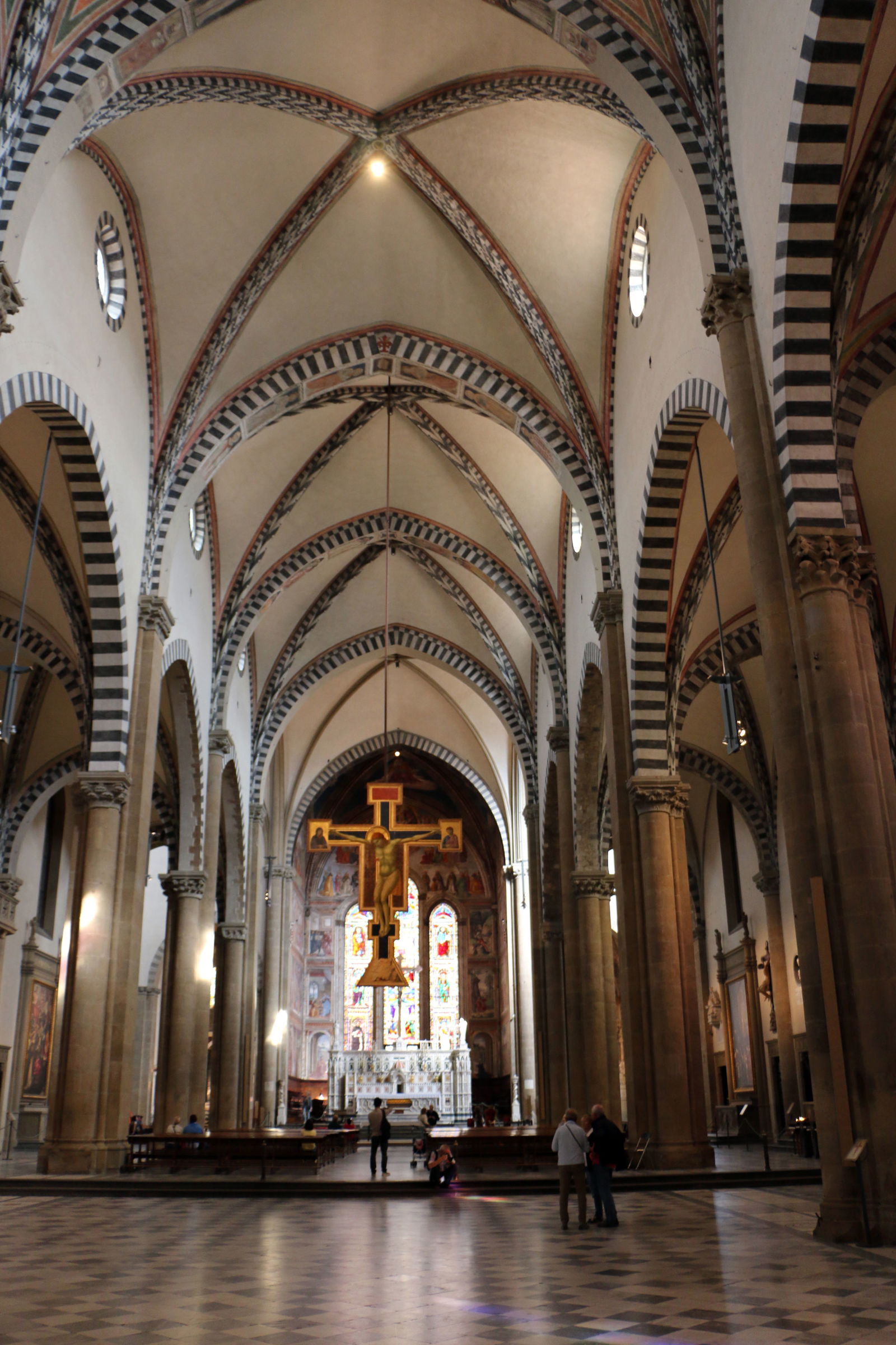 Intorno al 1290 al suo rientro a Firenze Giotto realizza la splendida e grande Croce di Santa Maria Novella, che rompe con la tradizione pittorica precedente. Infatti il Cristo di Giotto non è più un'icona, ma un uomo crocifisso. Sempre a Firenze realizza il bellissimo Polittico di Badia (1301-1304) oggi conservato alla Galleria degli Uffizi.