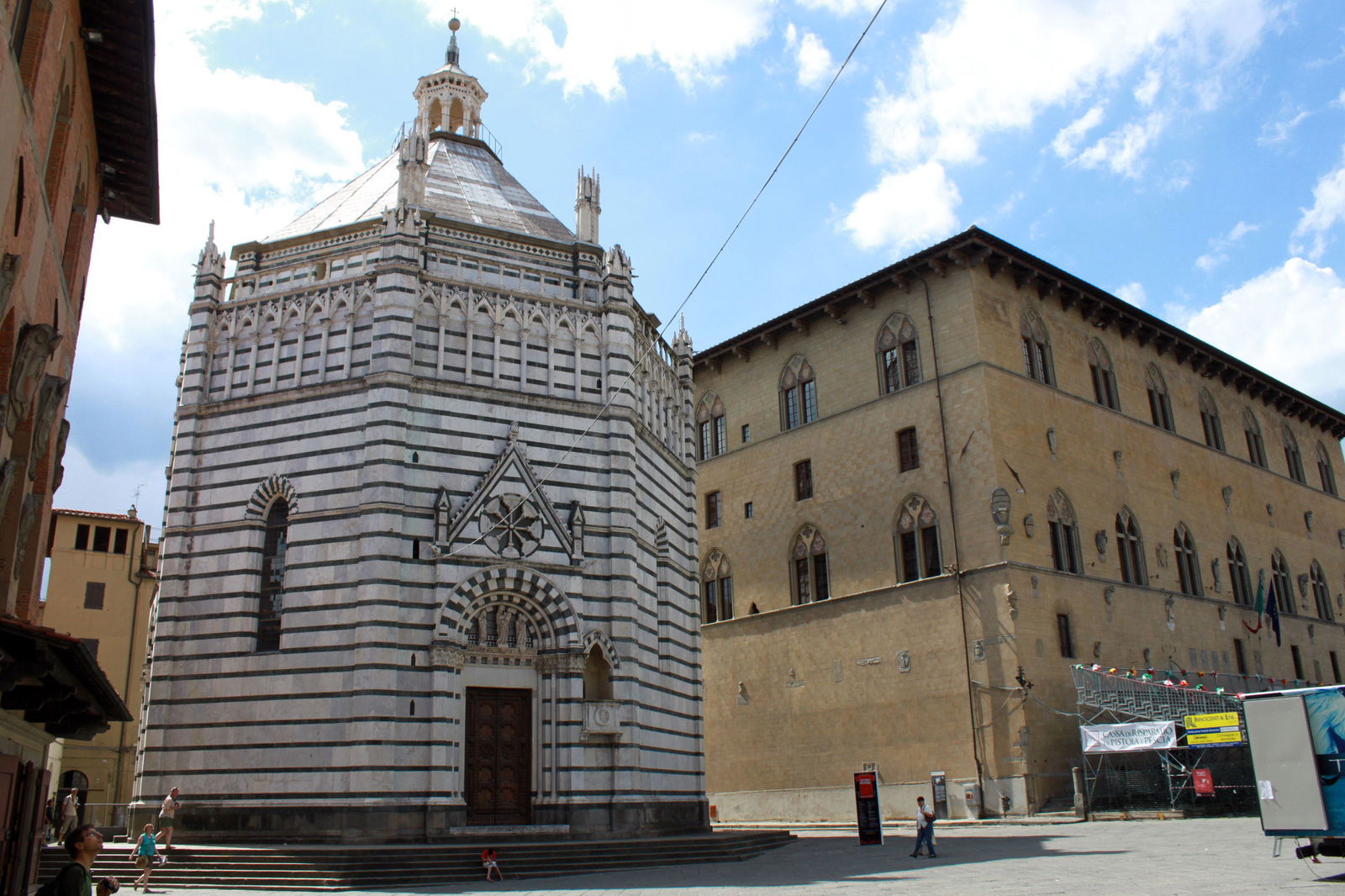 The Baptistery of San Giovanni in Corte, an elegant example of 14th century gothic architecture, faces the cathedral. The baptistery’s octagonal shape, constructed in two colors of marble, reflects the Pistoiese Romanic tradition.