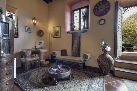 Jamal ha viaggiato moltissimo prima di fermarsi in Toscana, collezionando opere d'arte provenienti un pò da tutto il mondo, che adesso ornano e decorano la villa e le stanze dedicate agli ospiti. Jamal stesso vi condurrà in visita della villa, raccontandovi tutto di queste opere d'arte che costituiscono in un certo senso una parte della sua vita, e capirete come ogni stanza sia l'emblema di tutti i suoi viaggi, un angolo dove ne sono raccolti tutti i ricordi e dove tuttora continuano ad incontrarsi e confrontarsi le diverse culture degli ospiti che si fermano qui.