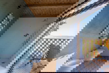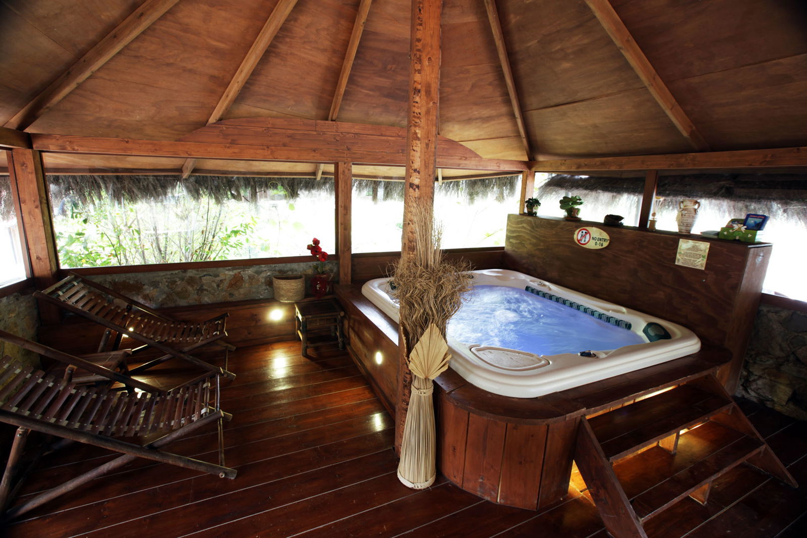 Ci sono 2 appartamenti qui nell'area VIP, Villa Gelsomino e Villa Biancospino, ognuno con una propria area esterna con gazebo coperto, sedie a sdraio, barbecue, giardino con vasca idromassaggio idromassaggio e una piccola area fitness all'aperto. Possono essere affittati insieme per ospitare fino a 15 ospiti o separatamente per un massimo di 7 o 8 ospiti ognuna. Dentro, i due appartamenti hanno bagni con box doccia in cristallo e doccie idromassaggio.