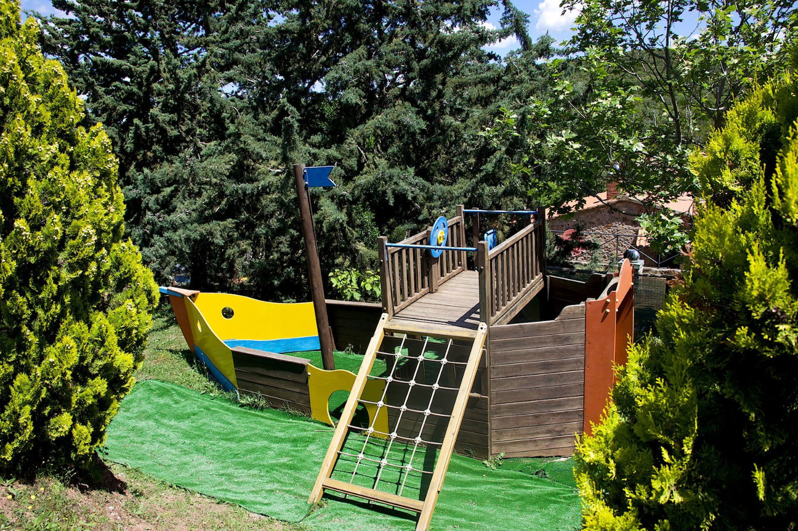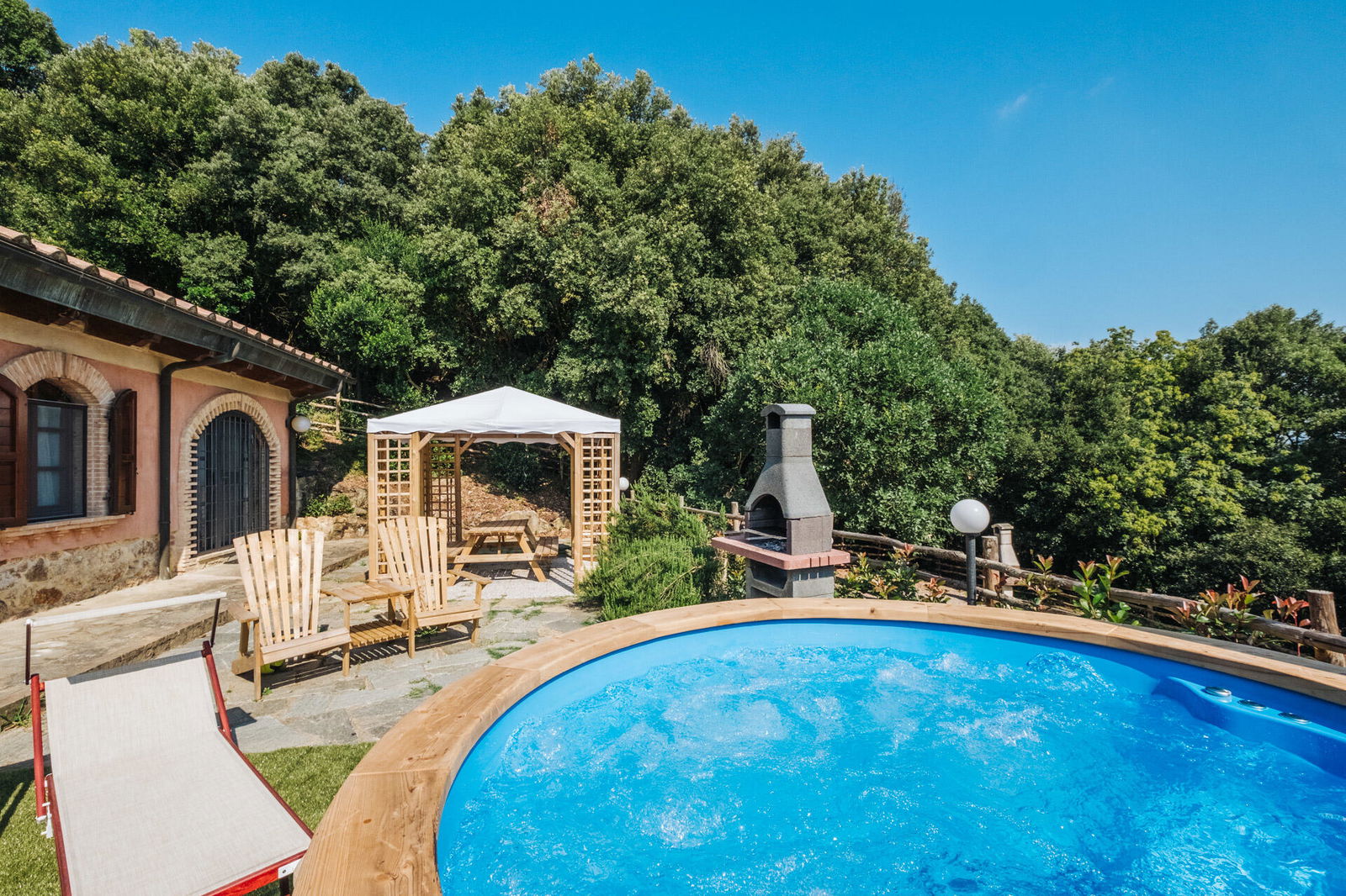 Il cuore della tenuta comprende 2 piscine, una è più piccola e riscaldata, dedicata ai bambini piccoli. Vicino alla piscina per bambini, ci sono 2 ampie aree da gioco dedicati con altalene e scivoli, oltre a un tavolo da ping pong, una grande scacchiera e un calcio balilla. Le famiglie con bambini si divertiranno particolarmente in quest'area, dove i tavoli all'ombra incoraggiano i picnic ed il relax mentre i bambini giocano.