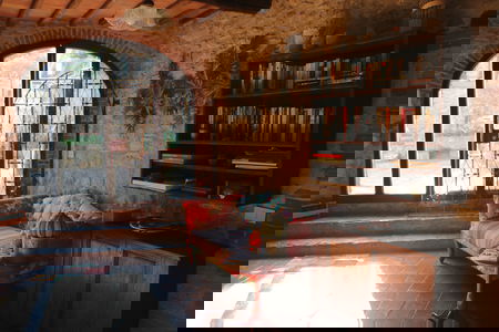 Martina ci dà il benvenuto nel suo “rifugio” di famiglia: i suoi genitori volevano un posto in campagna in cui rifugiarsi, in particolare in estate, e questo luogo stava cadendo a pezzi quando l'hanno trovato. Il piccolo borgo è stato restaurato con cura, appartamento dopo appartamento, nel corso degli ultimi 25 anni. Puoi vedere le foto di come era la tenuta prima dei lavori in album nella zona reception.