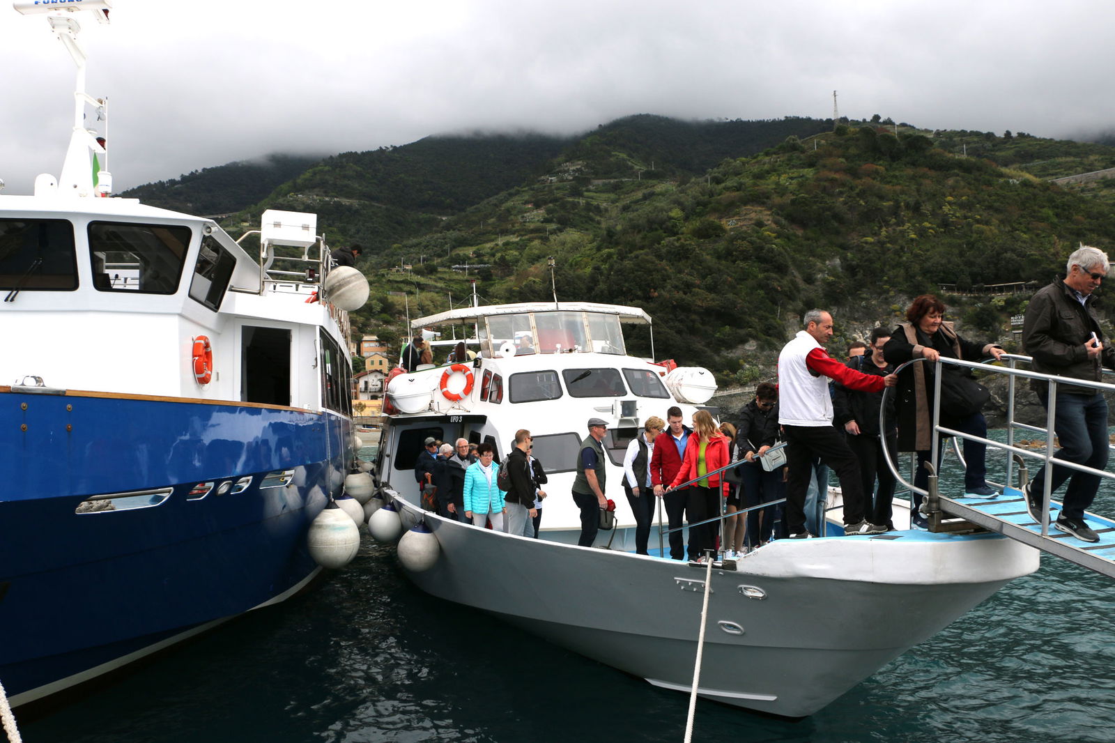 Il treno non è, comunque, l'unico modo per visitare Le Cinque Terre: puoi prendere anche l'autobus (10 minuti, ti lascerà ai giardini di fronte al porto) o camminare fino al porto (20 minuti). La differenza tra il traghetto ed il treno è che il primo è più soggetto a cancellazioni dovute al tempo poco favorevole alla navigazione ed alle condizioni del mare, nonostante siano situazioni abbastanza improbabili in estate. Ma l'altra - e sostanziale - differenza è che dal traghetto avrai una prospettiva totalmente diversa rispetto al treno dei borghi costieri de Le Cinque Terre, Lerici, Portovenere e persino Levanto. Buono a sapersi che sul traghetto vi sono i bagni, posti a sedere sia all'aperto che al chiuso. Le sedie a rotelle non sono propriamente indicate sia per il porto che per la conformazione dei traghetti. Per ulteriori informazioni e orari visita il sito del Consorzio Marittimo Turistico.