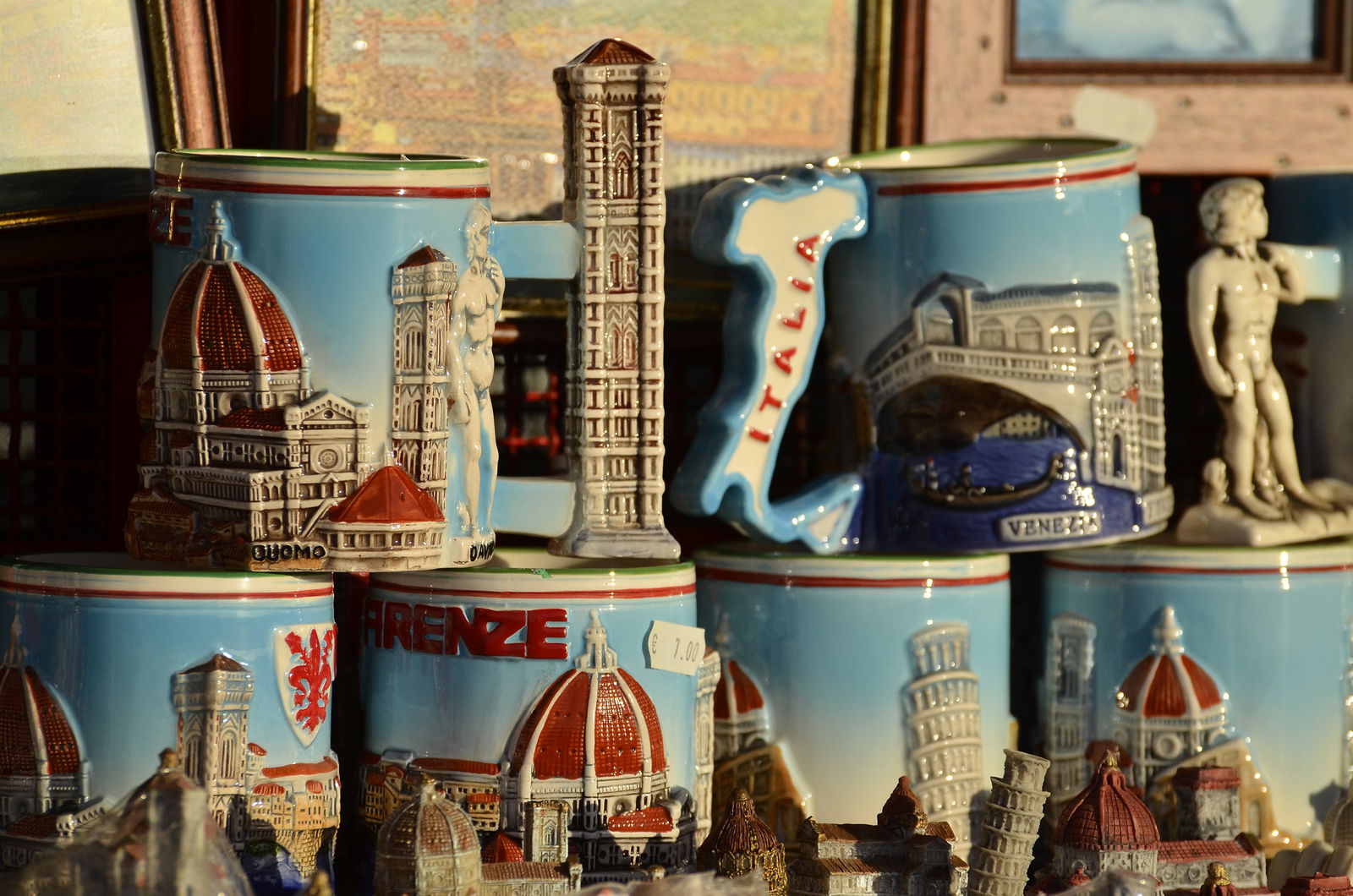 Anche se il più delle volte si tende a tenersi lontani dai cosiddetti "souvenir pacchiani", può essere anche divertente comprarne alcuni che ti ricorderanno per sempre del tuo viaggio e dei momenti trascorsi in Toscana; inoltre, ve ne sono diversi carini che possono essere anche utili e molto apprezzati da chi li riceve e che troverai in qualsiasi posto turistico tu decida di visitare, dai bicchierini alle tazze, per fare un paio di esempi.