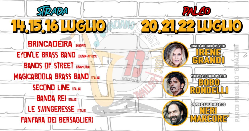 Street parade e concerti di musica da strada con bande inonderanno le vie del centro storico di un'allegra atmosfera... sonora! Non mancheranno stands di prodotti enogastronomici e di artigianato locale. Il programma completo ancora non c'è ma hanno già Nada, Nicky Nicolai & Stefano di Battista Big Band, Ron trio e Bandabardò & Cisco confermati. Controlla il sito web per altri dettagli.