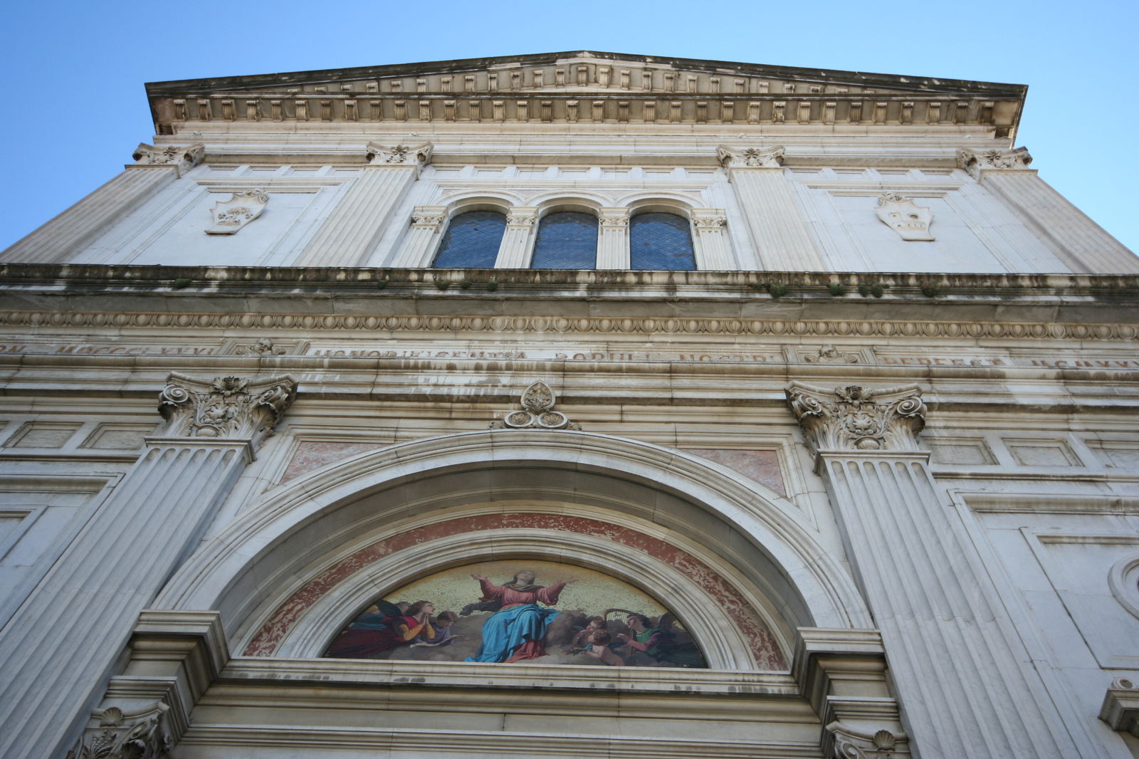 Situata al di fuori del centro storico in via A. Malaspina, si trova la chiesa che ospita uno dei simboli principali della via Francigena: una lastra di pietra con una preziosa incisione di un labirinto fatto di undici cerchi. L'architettura moderna della chiesa è il risultato dei continui bombardamenti (per l'esattezza, 99) subiti dalla zona durante la Seconda Guerra Mondiale. La chiesa, infatti, è stata completamente ricostruita ed oggi presenta il simbolo del "viaggiare verso Dio", metafora delle difficoltà che si hanno nel cammino della vita, proprio come i pericoli che si incontrano durante il cammino sulla via Francigena.