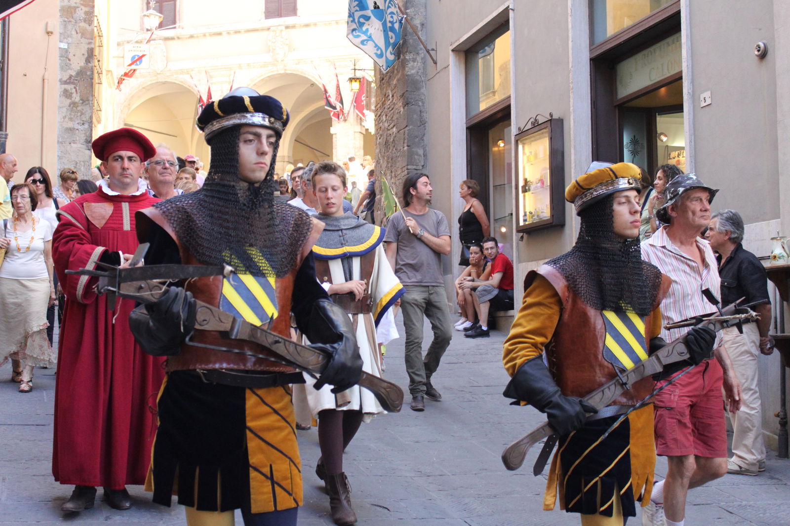 La sfilata in costume che si fà strada per le vie del centro storico, è una vera delizia! Cavalieri, nobili e nobildonne, paggi e alfieri tutti nei loro spettacolari costumi d'epoca, ti faranno viaggiare al'indietro nel tempo nella magica e sospesa atmosfera del Medioevo - un'esperienza davvero unica tutta da godersi in Toscana! Per altri dettagli, visitate il sito officiale del Bravio delle Botti qui.