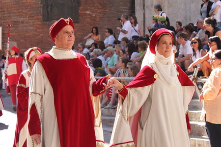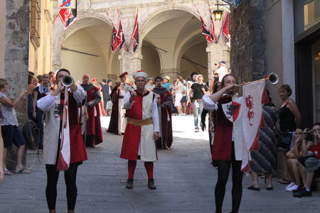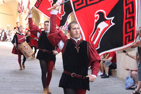 Per questa occasione la città è ancora più bella, tutta adornata di bandiere e decorazioni con i colori delle varie contrade. Il giorno della corsa inizia presto, con tutta una serie di cerimonie ed eventi quali la sbandierata e la marchiatura a fuoco.