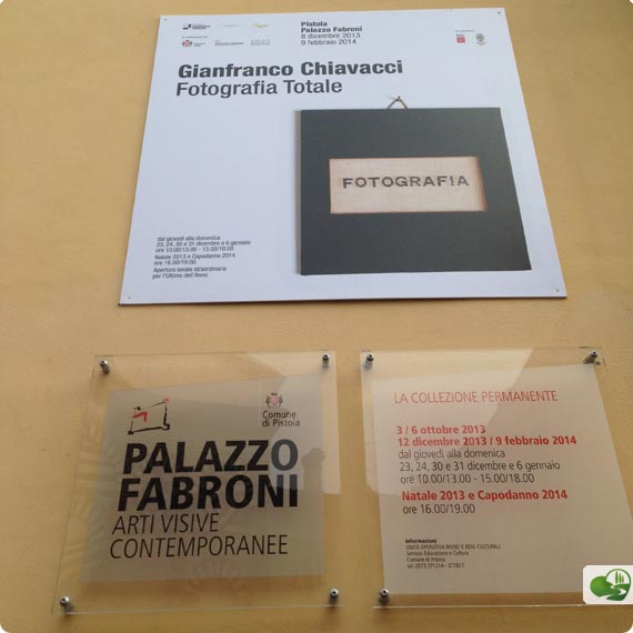 Il mio incontro con Palazzo Fabroni è avvenuto grazie ad una mostra temporanea che si è svolta dall’8 dicembre 2013 al 9 febbraio 2014. Gianfranco Chiavacci, fotografia totale. Un artista pistoiese DOC che adorava sperimentare, provare, buttarsi e scoprire nuove tecniche. Nel corso della sua vita ha lavorato sui codici iconografici e sui temi concettuali concentrandosi maggiormente sulla pittura e la fotografia. E’ stata una doppia bella scoperta: visitare la mostra, conoscere questo genio dell’arte grazie alle parole e alla visita guidata fatta da suo figlio Carlo e, al tempo stesso, scoprire la culla delle arti visive contemporanee di Pistoia.