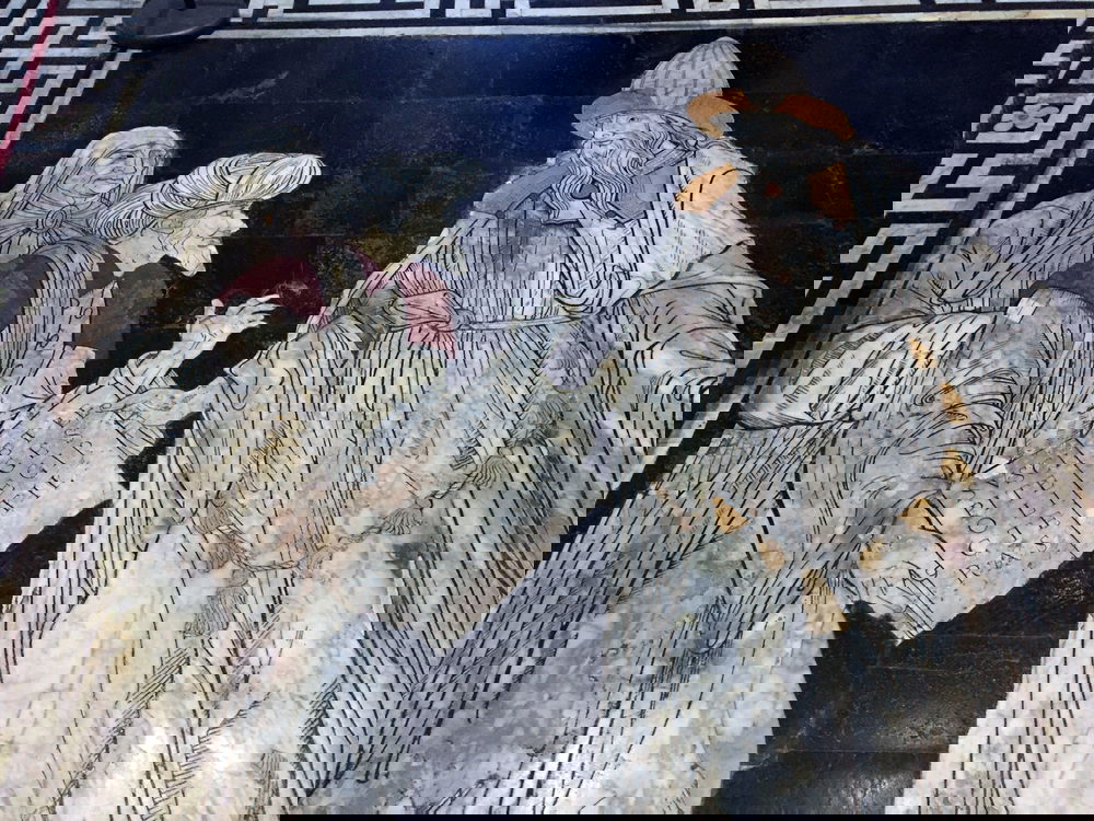 I disegni più antichi sono quelli al centro vicino l’entrata - La ruota della Fortuna e La Lupa senese circondata dai simboli delle città alleate datati 1369. Le opere sono state restaurate durante i secoli perché rovinate, in passato non usava proteggerle, alcune infatti sono tuttora particolarmente consumate. Ogni pannello racconta una storia diversa - ti invitiamo a scoprire quelli che più ti colpiscono e approfondirne la storia acquistando la piccola guida disponibile nel Bookshop dedicato nella Cattedrale.