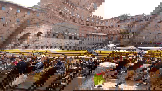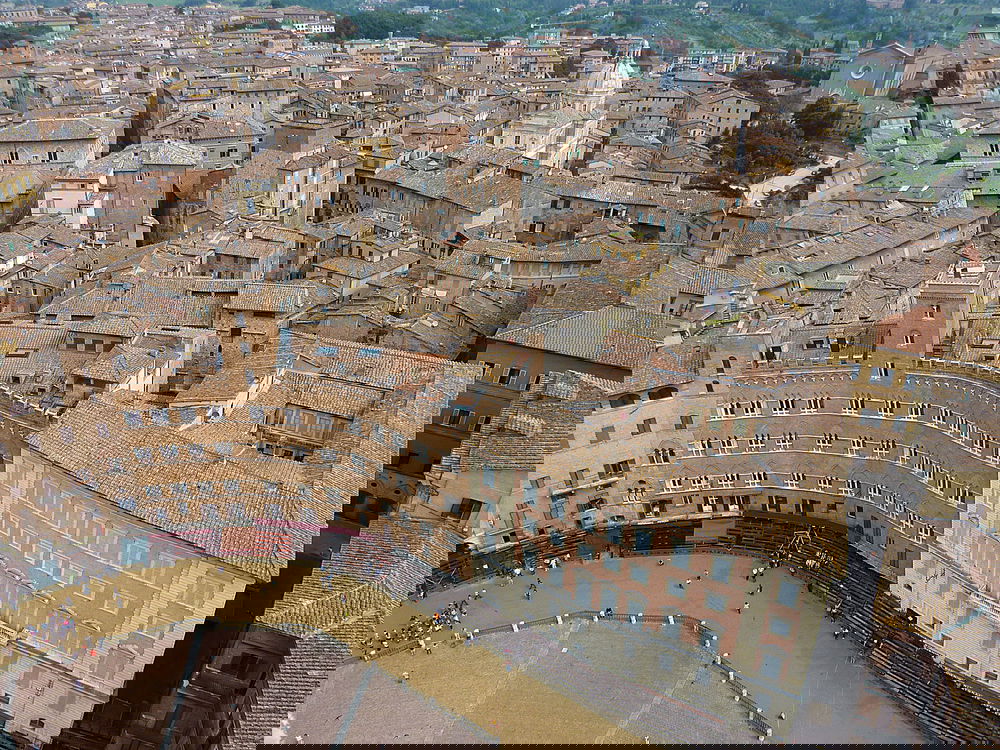 Simbolo universale della città, la particolare formazione di Piazza del Campo è solo uno dei motivi per cui l'UNESCO identifica Siena come l'esempio perfetto ed ideale di una città medievale: è stata costruita, infatti, nel luogo esatto dove le tre antiche città collinari digradando dolcemente si congiungevano insieme, prima di unire le forze per creare la comunità di Siena.