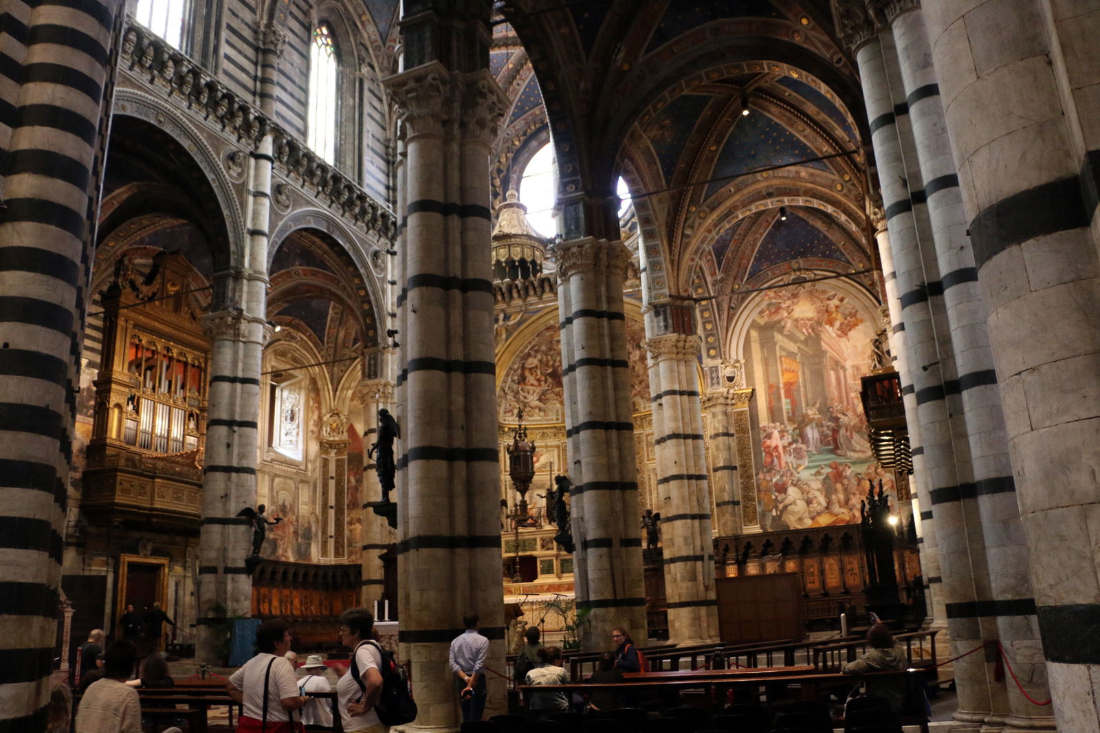 Credo anche che le soste previste valgano davvero la pena; considera soprattutto che le visite al museo ed alla chiesa della contrada sono opportunità davvero più uniche che rare, che pochi hanno la possibilità di sfruttare: ecco perchè ti consiglierei di scegliere questo tour piuttosto che altri , anche solo per questo motivo. La visita guidata di Siena finisce al Duomo: se decidi di entrare all'interno e proseguire il tour avrai da pagare 5 euro in più, e personalmente è un piccolo extra che ti consiglio di non scartare! Avrai la possibilità di vedere il bellissimo pavimento in mosaico e gli stupendi affreschi della Biblioteca Piccolomini.