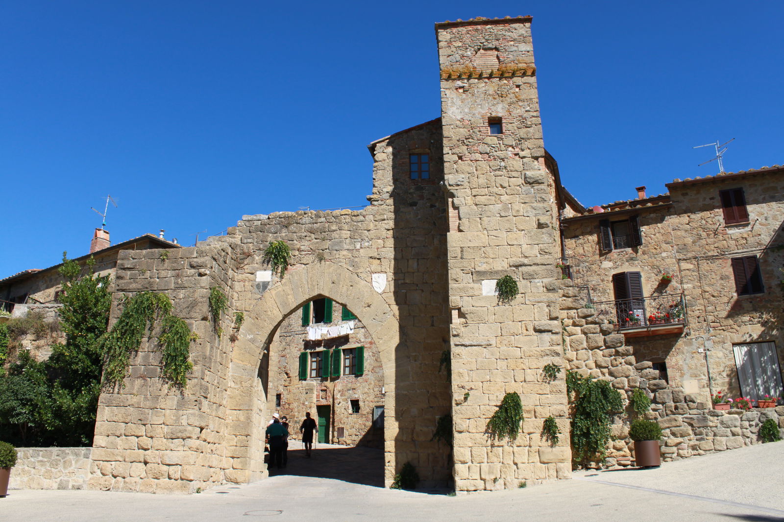 Questo piccolo borgo medievale fortificato è situato a sud di Pienza (qui sopra vedi le porte per entrare nel borgo) da dove potrai ammirare altre vedute panoramiche sulla valle e sulle sue tipiche strade costellate di cipressi.