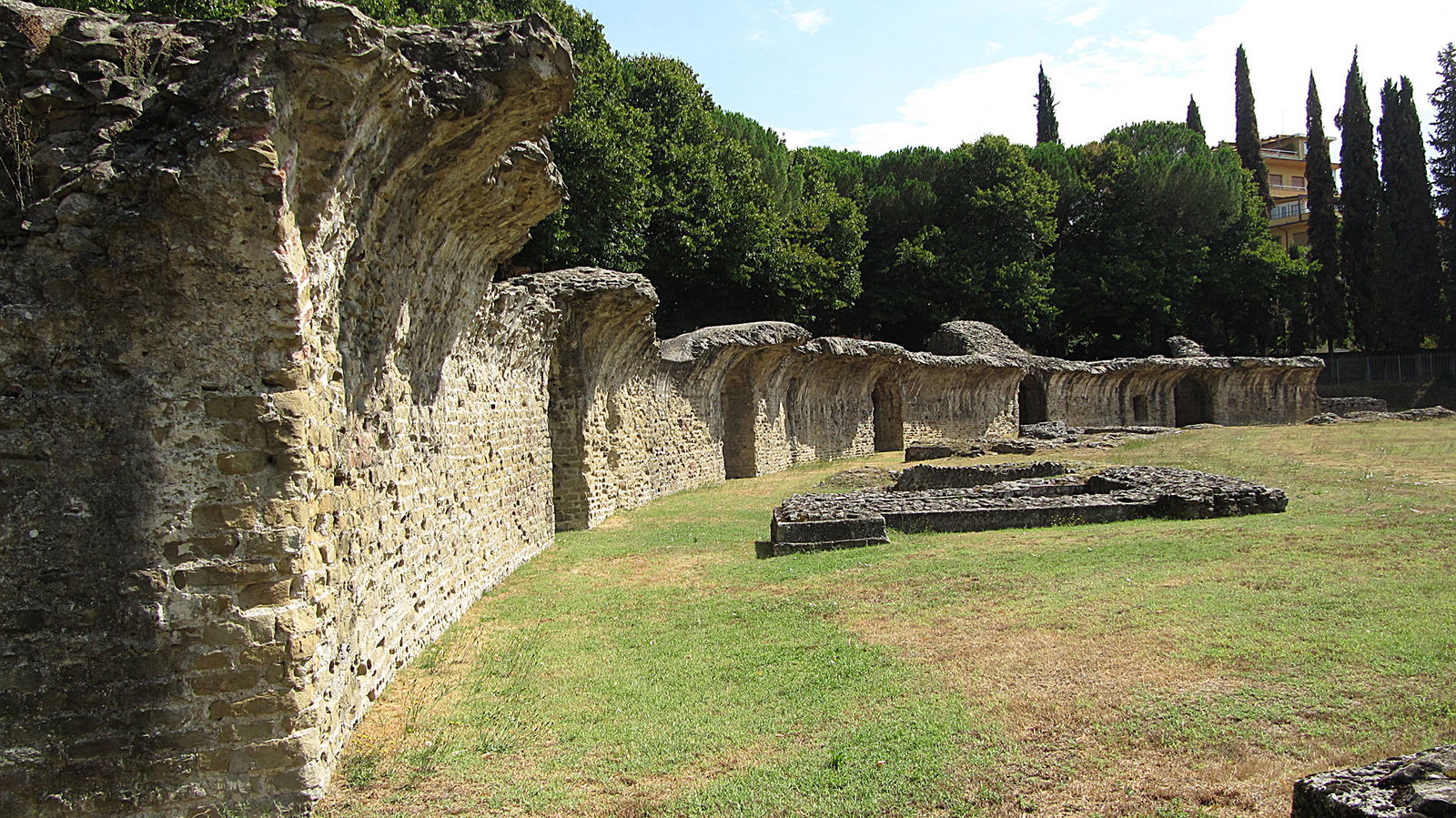 As you leave the Pieve and start to walk down the main road, you will notice that the city scenery begins to change ever so slightly, including more stores and perhaps even more activity. Once you come to via Francesco Crispi, you turn to your left and down just a short ways on the right-hand side is a green park where you can admire what remains of the Roman Amphitheatre, this monument which once held approximately 13.000 persons has been slowly dismantled and is now only a skeleton of what it once was.