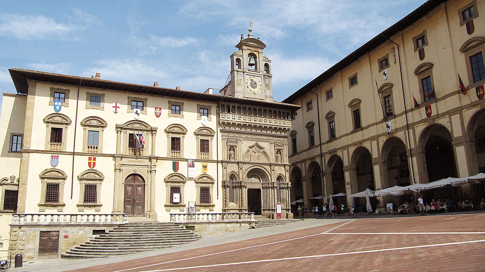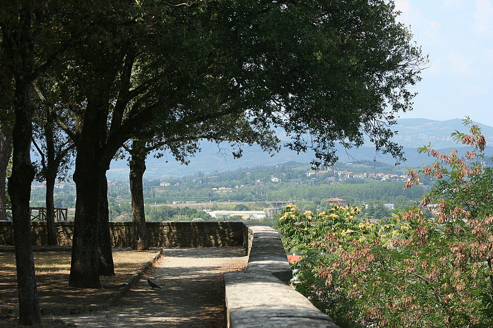 Walk along the exterior wall of the church to find one of the many the green areas of the city. The centerpiece is dominated by a large statue honoring one of its own: Petrarca, a famous Italian poet. The French styled park has a panoramic view towards the Casentino Valley, the surrounding vineyards, olive groves and the meandering extension of the more residential aspect of the city.
