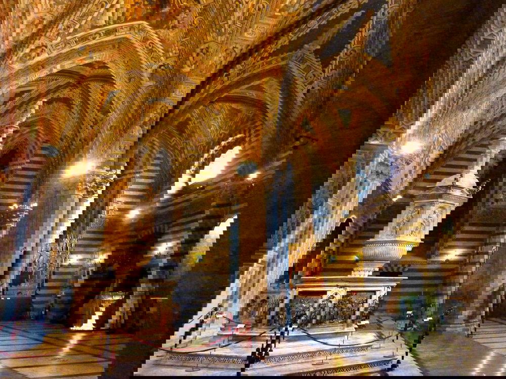 Head to the Duomo, standing majestically as a precious example of Italian Romanesque-Gothic style and admire the scenes across its pavement, a treasure waiting to be admired! Head back out to visit the Baptistery, crypt and Opera museum to see Duccio Buoninsegna's marvelous Maestà alterpiece from the 14th century. View our itinerary for a day in Siena for more ideas.