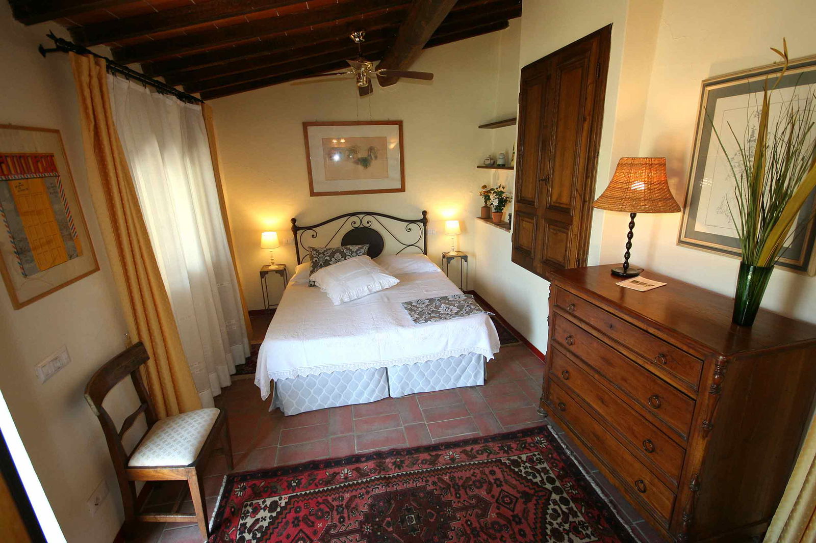 The double rooms are thought out for comfort, color and of course, a bit of romance — ok, maybe even a lot of romance. Just look at the room Giallo, with its private covered patio overlooking the pool, and its enticing hydro-massage shower. Or Campagnola, with its polished terracotta floors and wood beam ceilings, it is the perfect example of a romantic setting in Tuscany. Each of the 9 B&B rooms features an en suite bathroom, original artwork and a ceiling fan. The restoration of the terracotta, wood and stone are the perfect reminder of the origins of the farmhouse.