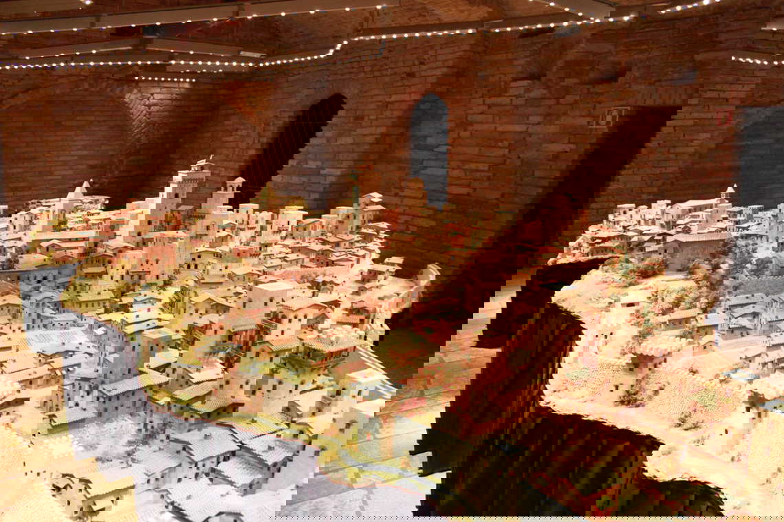 Photographs cannot really depict what you feel as you admire the thirteenth century San Gimignano, nor show the level of detail of this 1:100 scale reproduction that takes up over 27 square meters of space. The miniature reproduction is completely made in clay, baked one time and then painted using natural pigments. Over a ton of clay from nearby Montelupo was used to create this work of art. Countless hours of intense historical, architectural and technical research was involved before actual construction could begin, a project that required over 20,000 hours of work by several ceramic artists.