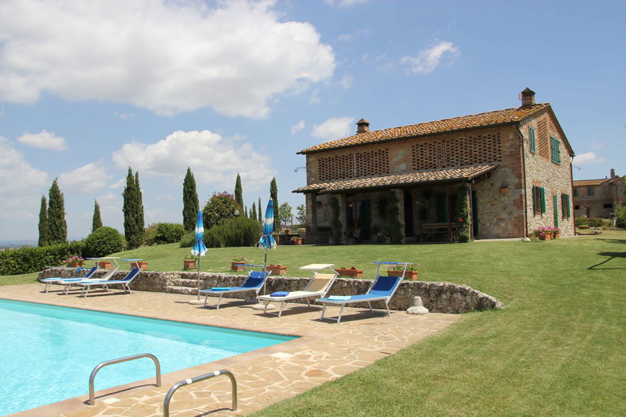 The pure essence of Tuscany from every direction. Villa Corsanello, located in the center of the classical Siena landscape, is a stunning solution to a private vacation villa rental in Tuscany. Even before it comes into view, you will be totally enchanted with the spectacular views of rolling hills, the Crete Sensei and Siena in the near distance.
