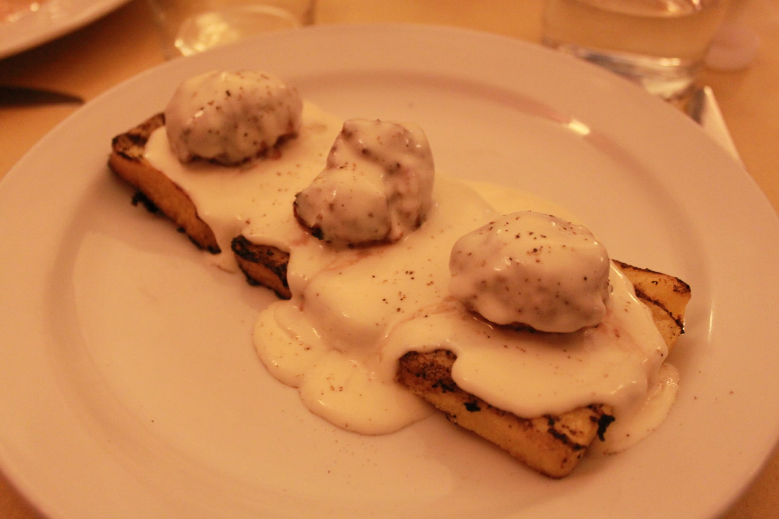 Among the more noteworthy dishes on the menu definitely the Toasted Polenta with a cream sauce and spicey Tuscan sausage. Another favorite is the Pici pasta (like a thick spaghetti) with a sauce of sage and almonds.