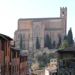 This church is definitively the best starting point for the itinerary of St Catherine, as it is her home church. In the chapel, at the opposite end of the altar is conserved a fresco depicting St Catherine with a fellow believer, painted around 1375 by Sienese Andrea Vanni.