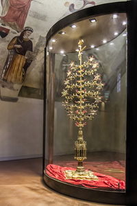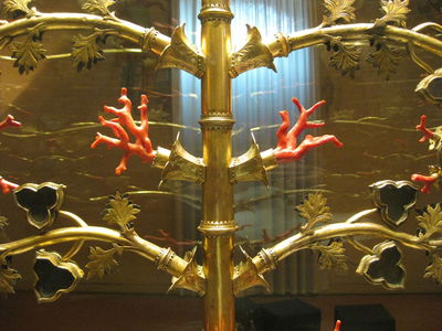 Inside the XIII century Town Hall building is the Museum, the keeper of Lucignano’s treasures: works of art from the Tuscan Middle Ages and Renaissance, among which stands the magnificent Golden Tree. Its impressive size (2.60 meters high) and the richness of the decoration (corals, crystals, miniature on parchment ..) make it an attraction for tourists from all over the world. The Tree is within the Sala delle Udienze, the Hall of the Audiences, all painted with frescoes dedicated to Illustrious Men, created on commission by the Priors of Lucignano in the XV century.