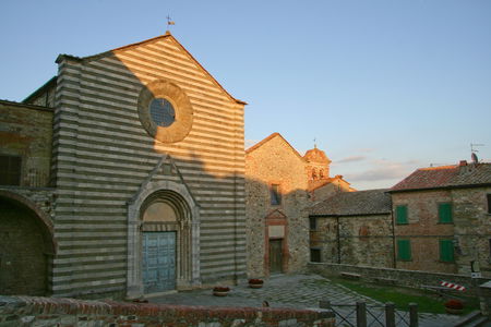 The main church of Lucignano, however, is the XVI century Collegiate Church, located at the opposite end of the square and fronted by a beautiful travertine staircase designed by the Jesuit Father Andrea Pozzo, that matches the design of the ellipsoid urban structure of the town.