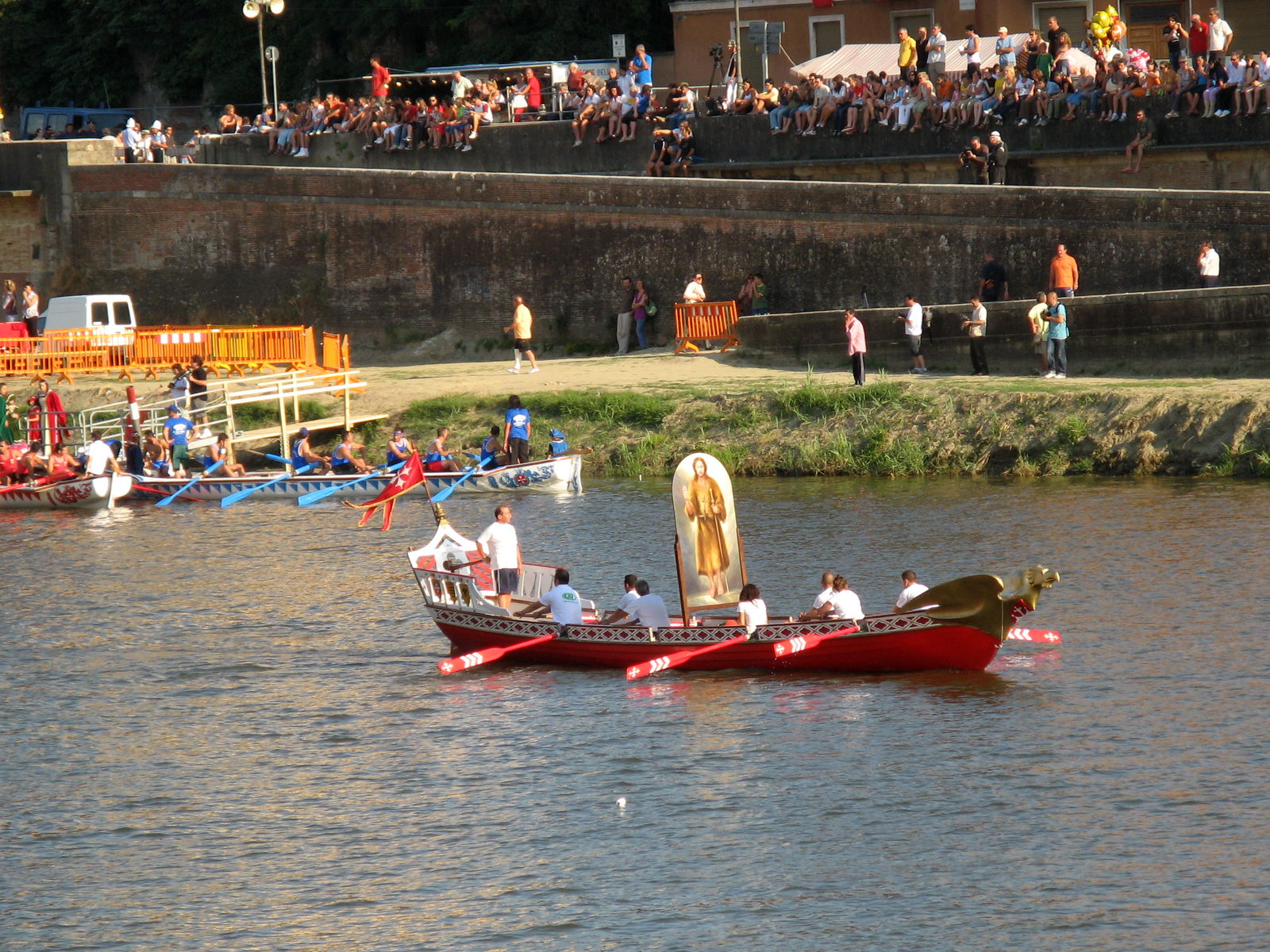 To celebrate the patron saint of Pisa, four boats representing the most ancient districts of the city compete in the Regatta of Saint Ranieri along the Arno river, heritage of the past glory of Pisa as an ancient maritime republic.