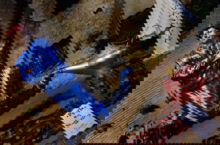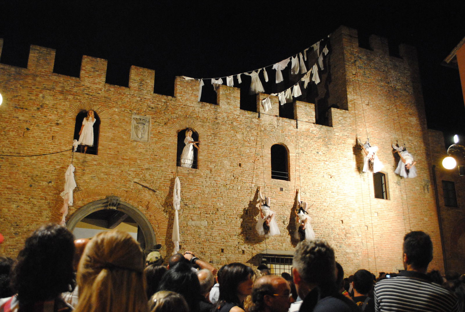 As soon as we arrived within the village, we watched the show made by the company Cafélulè called “Segreti di panni sporchi” or "Secrets of Dirty Clothes”, an elegant contemporary dance made on a vertical wall.