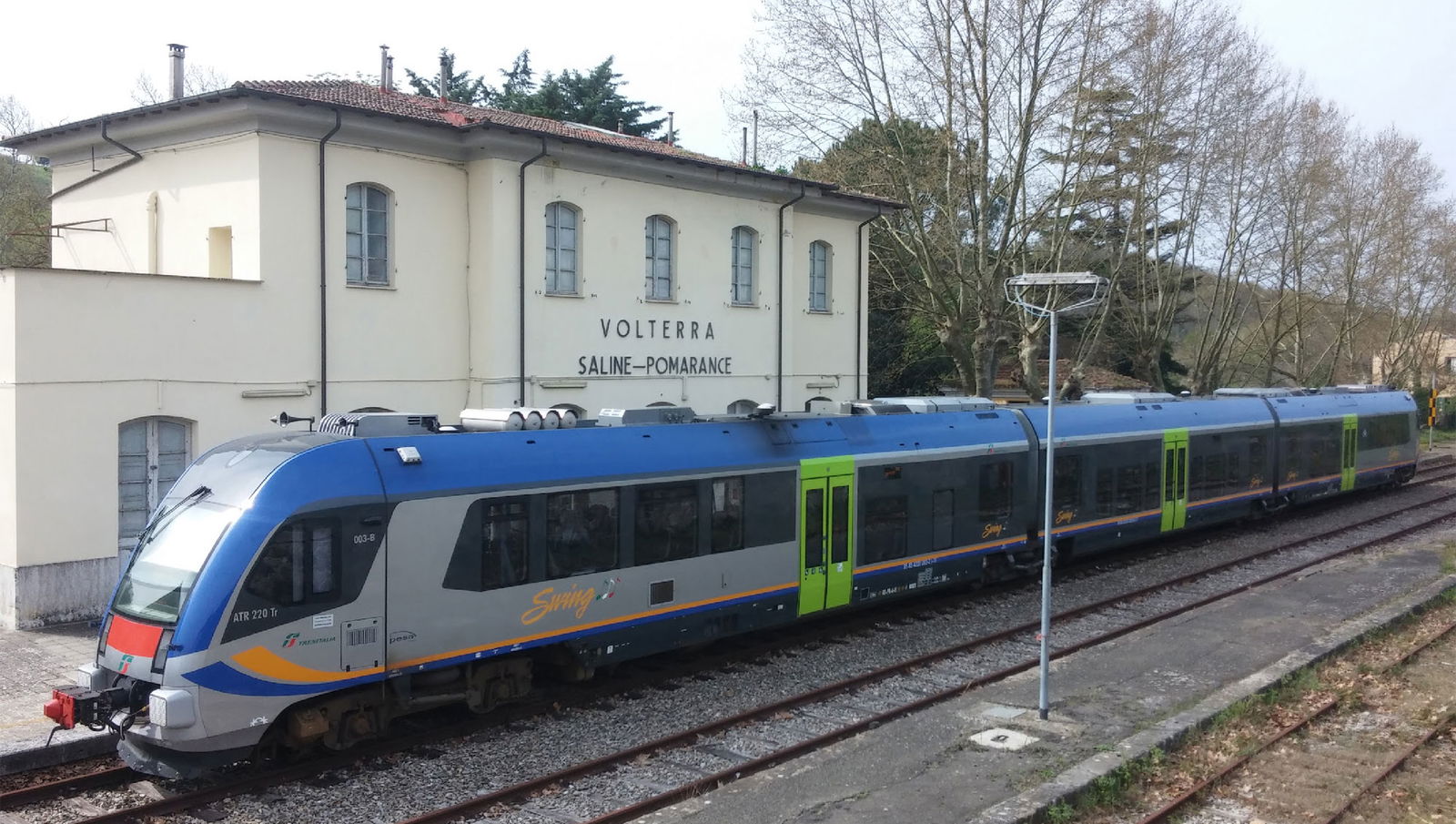 The closest train station to Volterra is along the Cecina-Volterra railway line, with the stop called "Volterra Saline – Pomarance". It is 10 kilometres from the Volterra city center. It is quite small so definitely check train schedules before traveling, on www.trenitalia.com.
