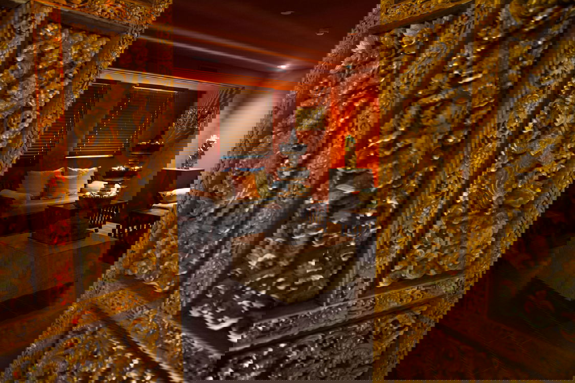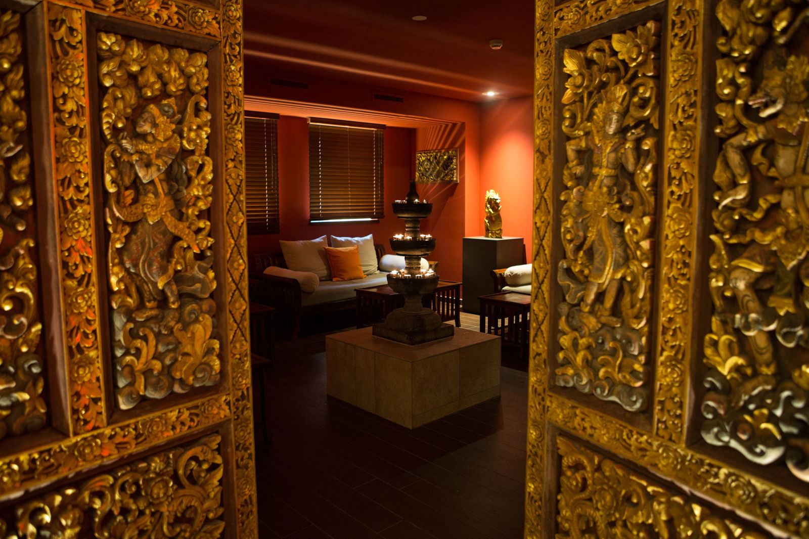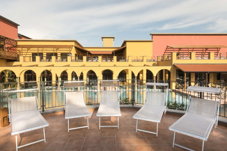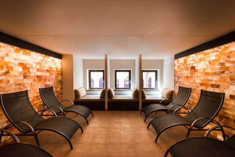 The spa/wellness center brings together East and West, with a splendid setting and multi-sensory experiences based around water, heat, quiet and tranquility. Think hammam and saunas, but also water works such as a chromatic waterfall (called the Grotto), outdoor pools including separate salt pool and ones with jets, unique relaxation rooms, each with a different “theme”. These include a room with sounds of nature and swings that make it seem like you are in the trees in a nest like a bird. While the room in Italian is called the Room of Nests, in English, a cocoon would me more appropriate. Another room has water beds, while another has Himalayan salt lining its walls and appropriately called the Salt Room. This area has many elements inspired and brought over from southeast Asia, fusing Italian modernity with oriental designs.